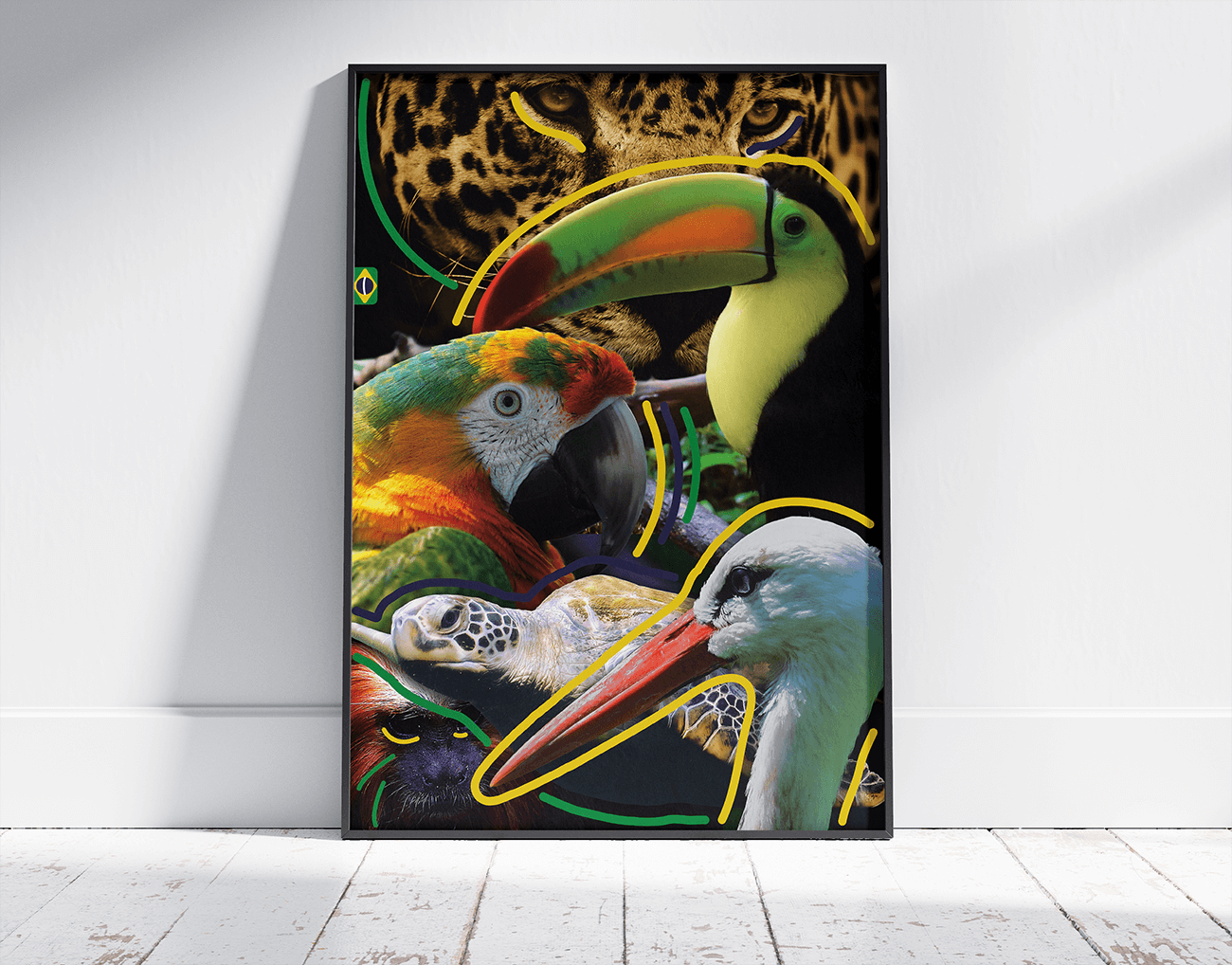 Este é um projeto pessoal pelo qual eu tenho muito carinho, pois fiz este kit de pôsteres quando cheguei de volta ao Brasil depois de 16 anos morando no Chile. Eu tinha tanta saudades do meu país, do clima, das pessoas, que quando finalmente voltei, fiz estes pôsteres para colocar em casa: é uma homenagem ao Brasil – ao meu Brasil Tropical.