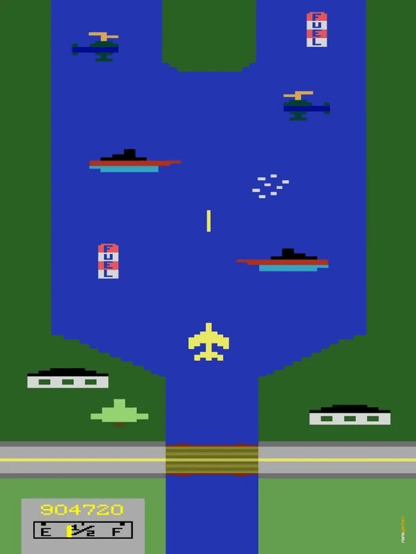 O jogo se trata de um aviãozinho que tem que destruir barcos, helicópteros e outros aviões inimigos, enquanto avança sobre um rio.